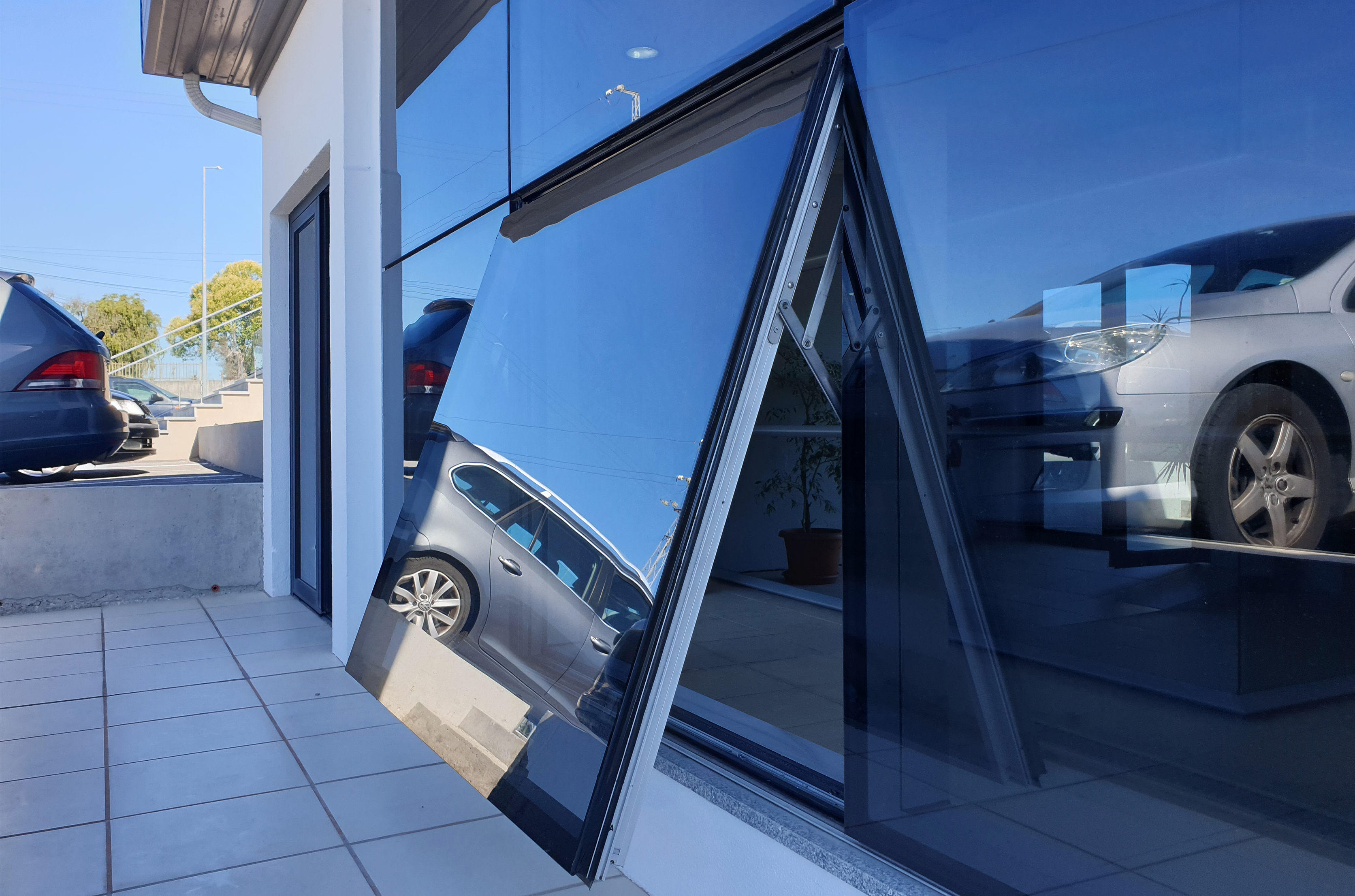 Instalamos janelas projetantes de elevada qualidade e com a possibilidade de inúmeras combinações de cores e tipos de vidro. Esta é uma janela que contém um eixo horizontal na parte superior, permitindo, assim, uma abertura parcial para o exterior. É equipada com um puxador, também conhecido pelo nome de cremone. Aquando da manobração do puxador, a folha gira parcialmente sobre o eixo horizontal, com a ajuda de dobradiças e compassos posicionais ou compassos simples.