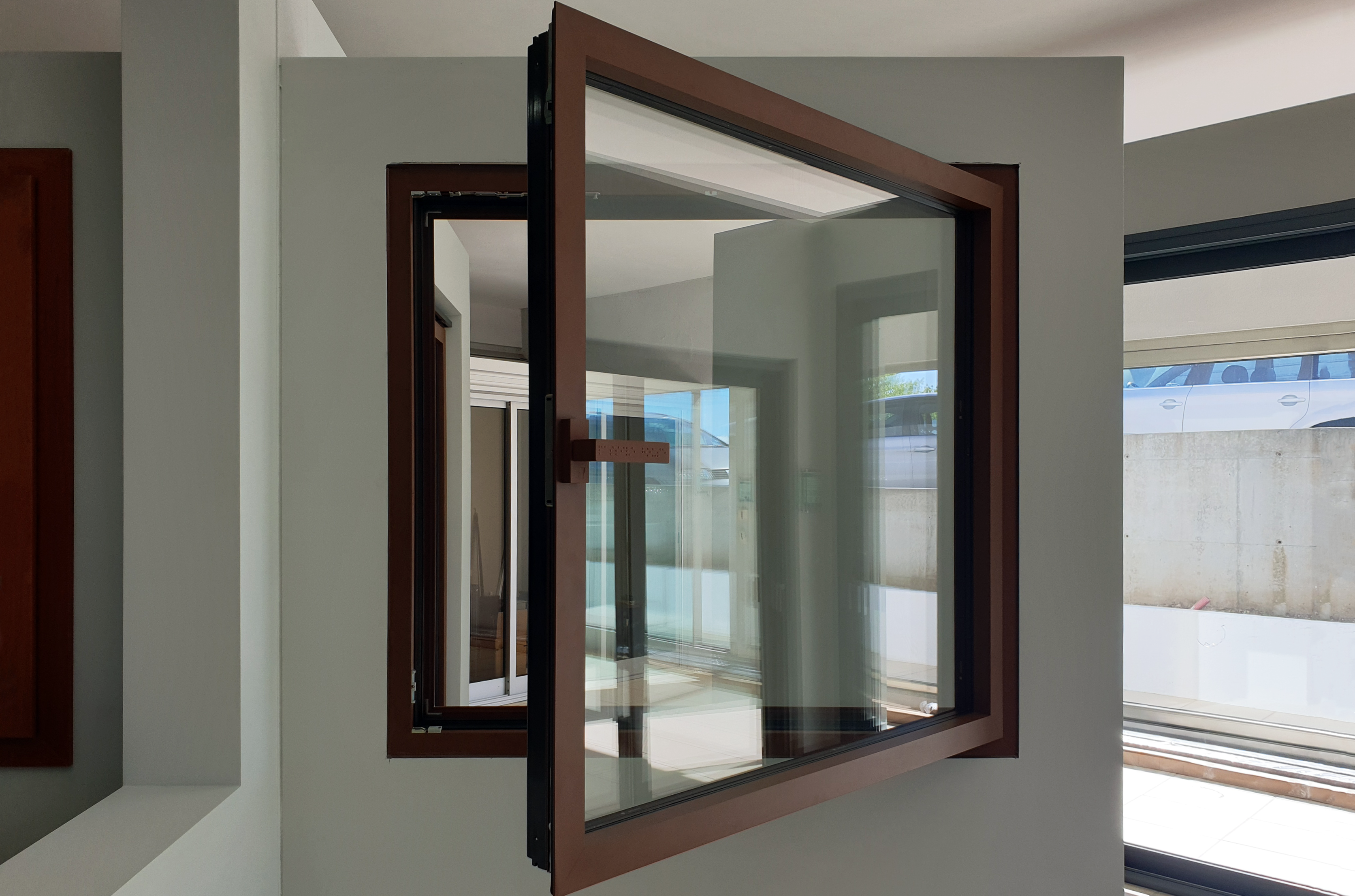 Instalamos janela pivotante com inúmeras combinações, de modo a satisfazer as necessidades dos clientes. Este tipo de janelas contém um eixo central (vertical ou horizontal) sobre o qual gira, abrindo parcialmente para o interior e exterior.