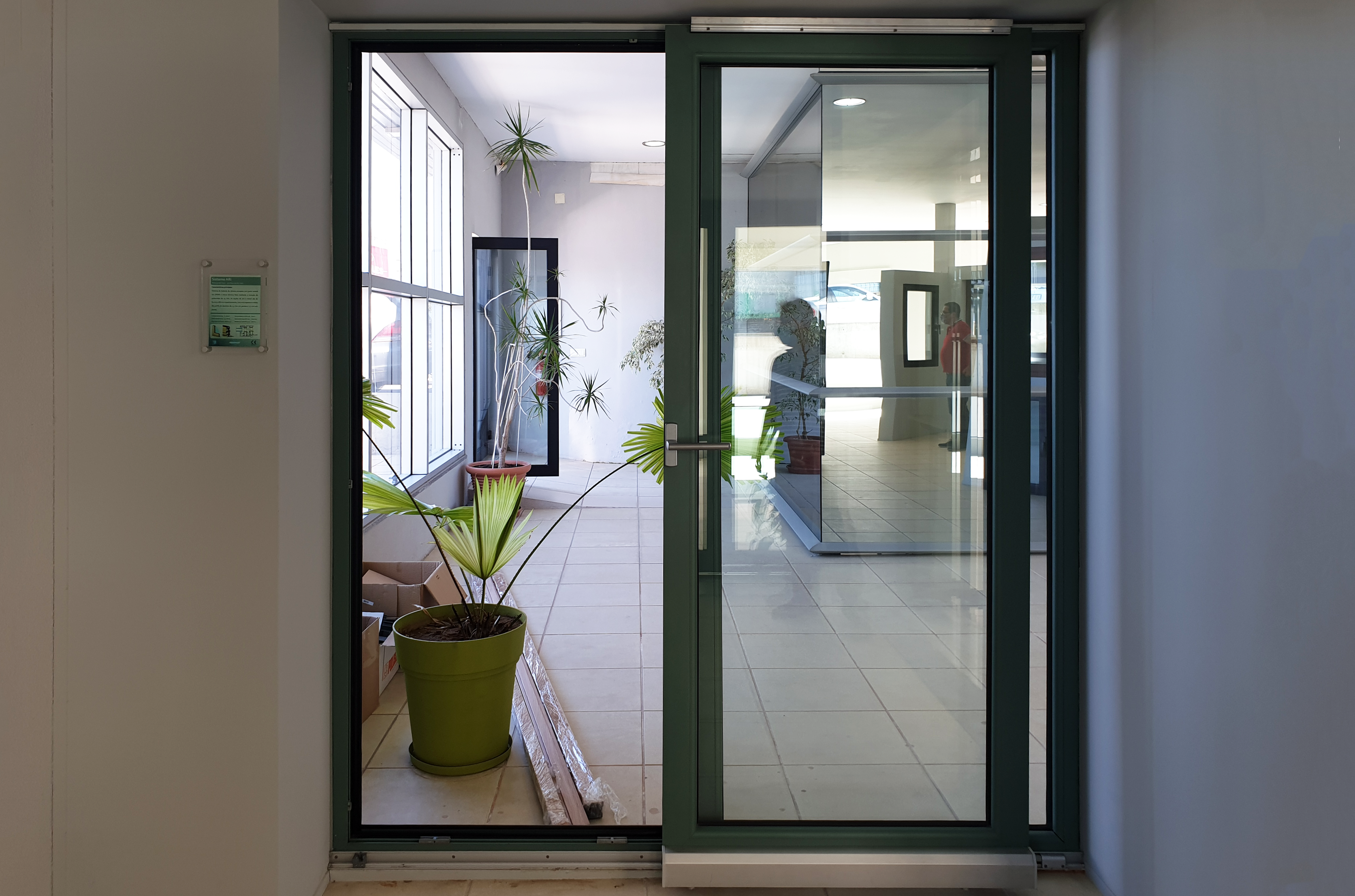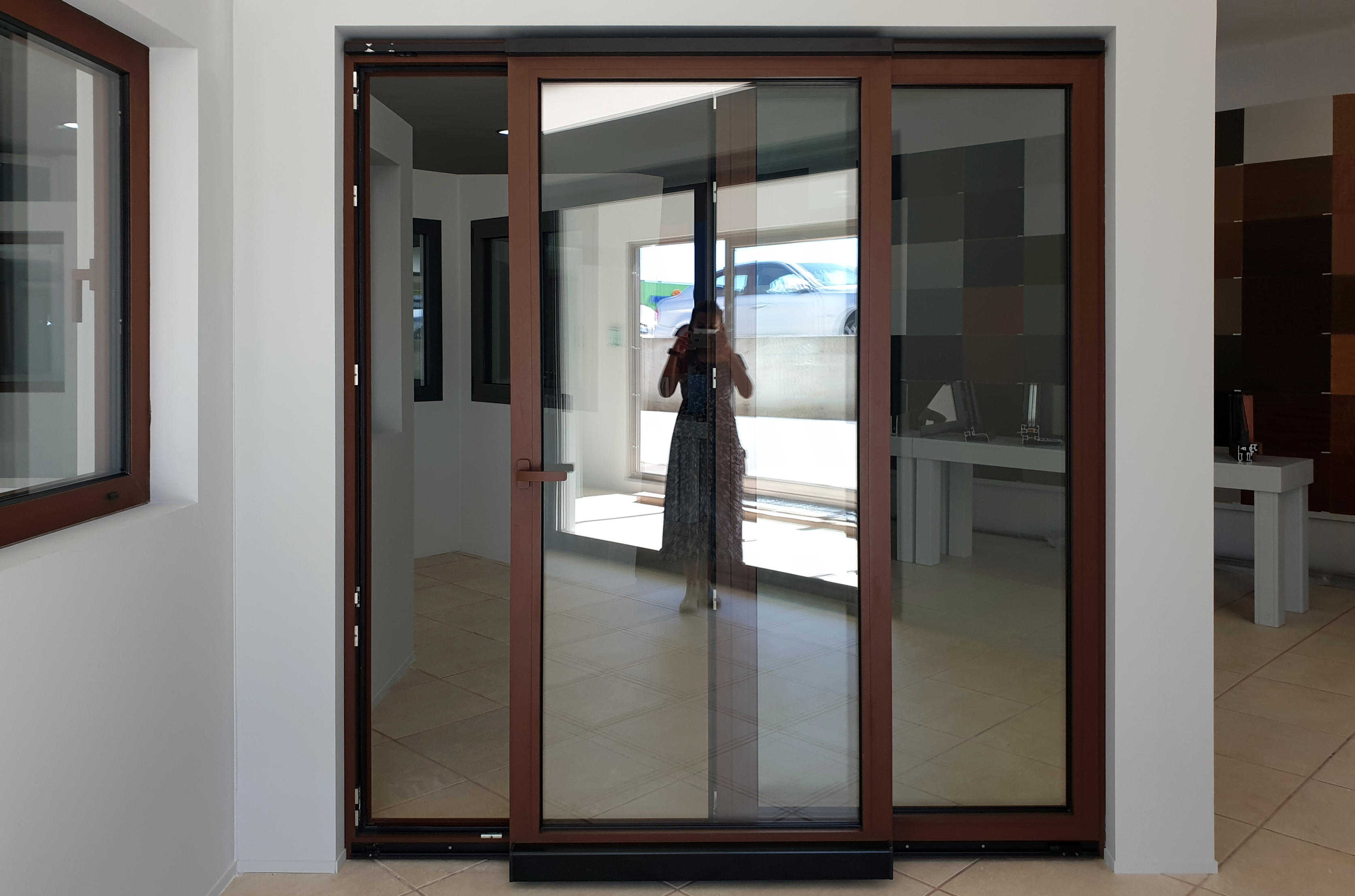 Quer isto dizer que os elementos envidraçados são dobrados para o interior ou exterior e vão abrindo de uma forma sequencial emparelhando-se com as restantes, sendo suportados através de carris. Este sistema permite uma abertura total do vão, com a possibilidade do primeiro vão poder ser utilizado como uma porta de entrada.