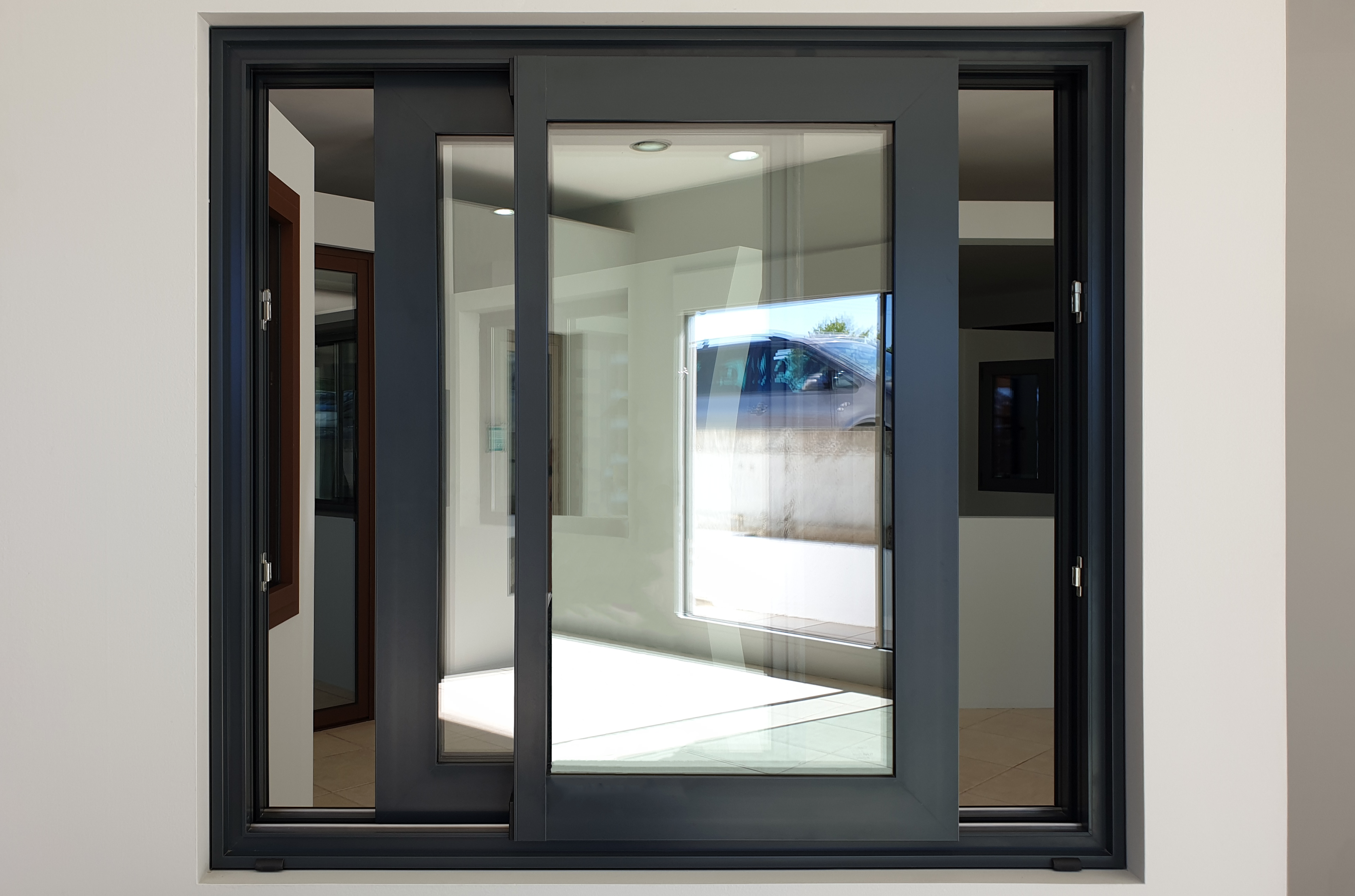Instalamos janelas oscilo-paralelas de elevada qualidade que permitem inúmeras combinações de cores e vidros. Estas são uma combinação entre janelas basculantes e deslizantes. Assim sendo, para efeitos de ventilação pode se utilizada como uma janela basculante, funcionando, também, como uma janela de correr, permitindo a abertura total do vão, na posição secundária do manípulo.